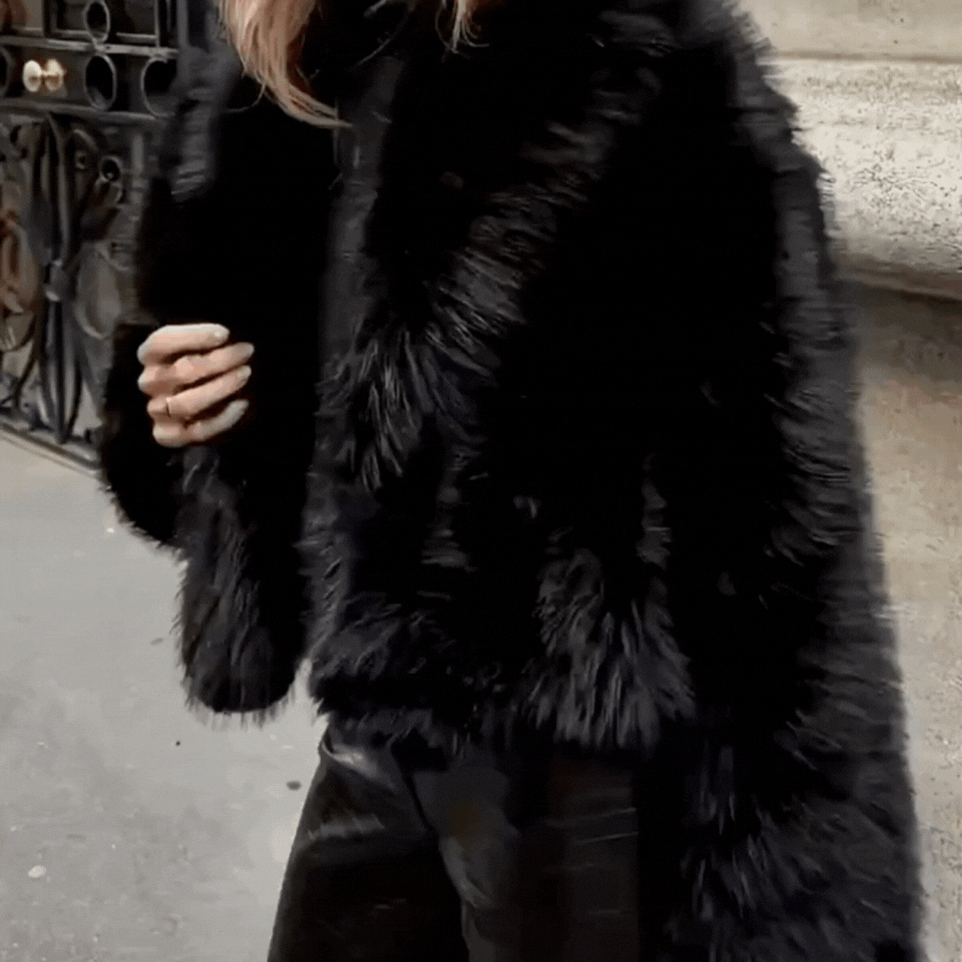 Chaqueta corta Pelo con solapa – Abrigo Elegante Negro | Estilo Urbano Chic y Versátil